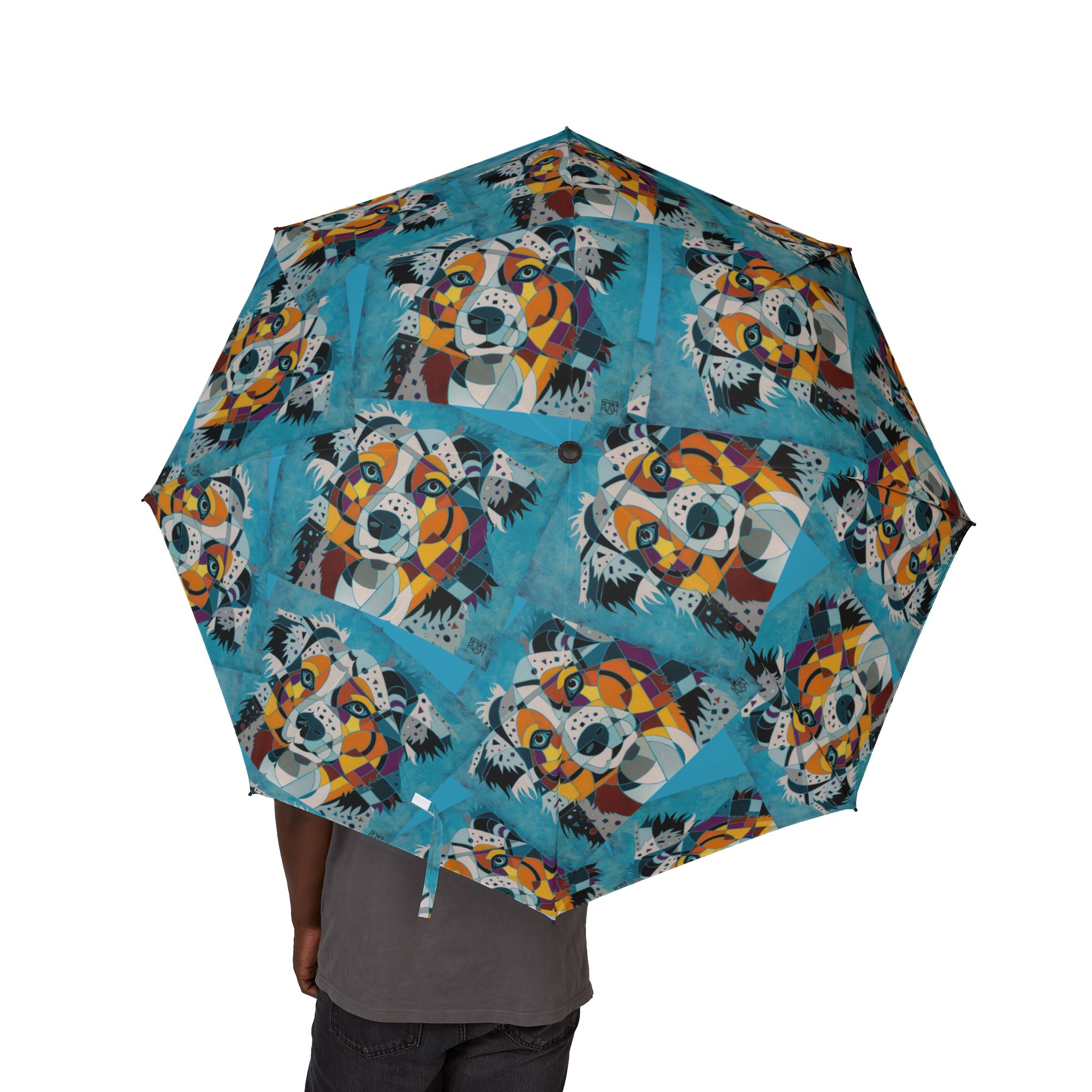 Awesome Aussie Dog Art Umbrella, Travel Accessory, Gift for Animal Lovers, Foldable Umbrella, Unique Rain Gear